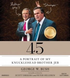 In 45: A Portrait of My Knucklehead Sibling Jeb, George W. Bush requires readers on the trip through his ‘butt-faced kid brother’s’ life, describing the encounters that forged his presidential character, and in his personal plainspoken or even comprehensible style, showing us why the younger Bush should be the following leader of the free world. And while he definitely desires Jeb to become commander-in-chief, he just can’t stop razzing him either. 45 may be the most hilarious (and backhanded) presidential endorsement you’ve ever read–a accurate literary noogie from one brother to some other.
