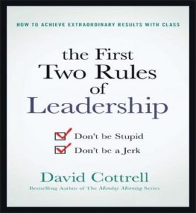 Written by bestselling author David Cottrell, The First Two Rules of Leadership: Don’t be Stupid, You shouldn’t be a Jerk offers tried-and-true leadership strategies that stand the test of time-all which you are able to put into practice today to excellent results. The principles discussed connect with businesses atlanta divorce attorneys industry, as well as schools, hospitals, churches, and even homes. By following the two rules specified in the book’s title, you’ll improve morale, lower turnover, boost your very own job satisfaction, and have a whole lot more fun leading.